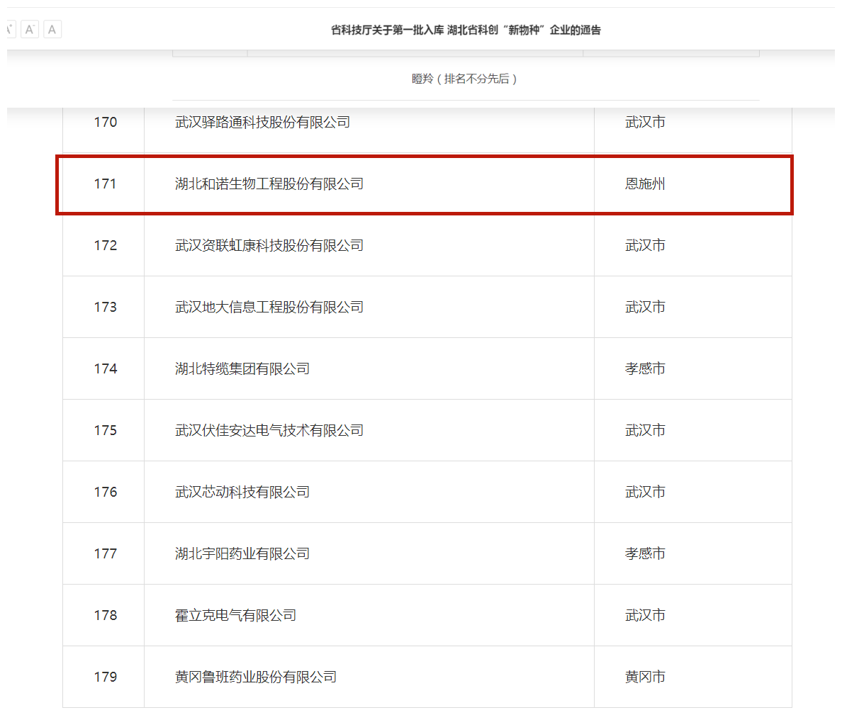 近日,根据《湖北省科创“新物种”企业培育计划实施方案》(鄂科技通〔2021〕53号)的精神,经评选,湖北省科学技术厅发布《关于第一批入库湖北省科创“新物种”企业的通告》,湖北和诺生物工程股份有限公司凭借在企业创新发展中的突出成绩成功入选省级瞪羚企业。瞪羚企业具有成长速度快、创新能力强、专业领域新、发展潜力大等显著特征。这一荣誉标志着和诺生物被认定为成长性好、具有跳跃式发展态势的高新技术企业。